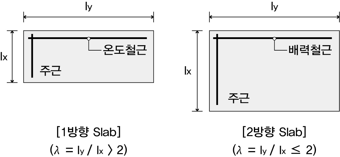 | 적용 | 1방향 Slab | 2방향 Slab |
